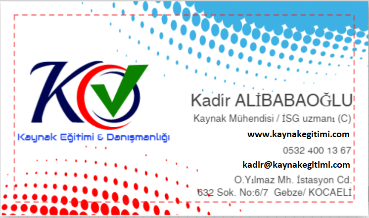 BİZE ULAŞIN Kadir ALİBABAOĞLU Kaynak Mühendisi / C Sınıfı İSG Uzmanı 0 532 400 13 67 kadir@kaynakegitimi.com Osman Yılmaz Mahallesi İstasyon Caddesi 632 Sokak No:6/7 Gebze – KOCAELİ
